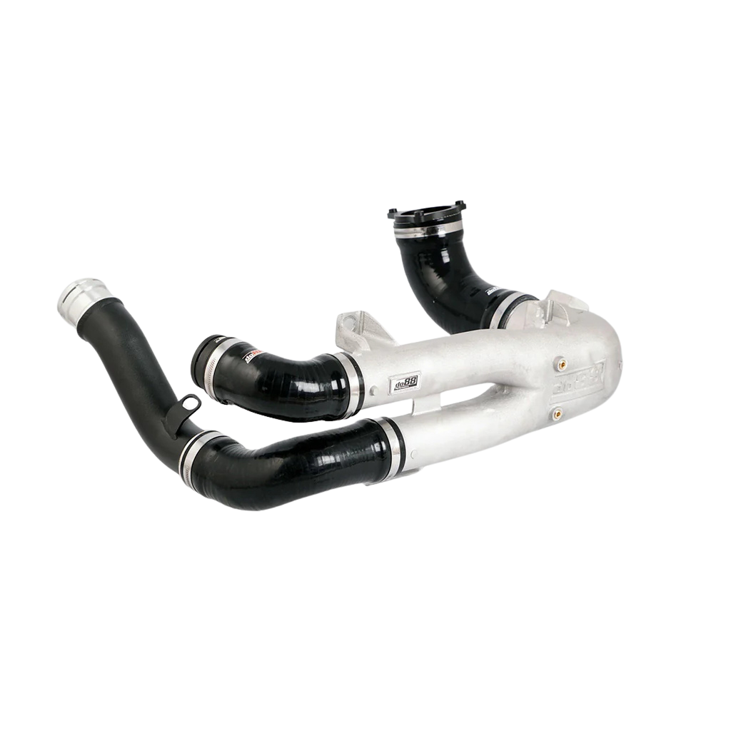 Dette sæt erstatter hele det originale Y-rør/charge pipe-system og er konstrueret i støbt aluminium med præcise CNC-bearbejdede tilslutninger.
